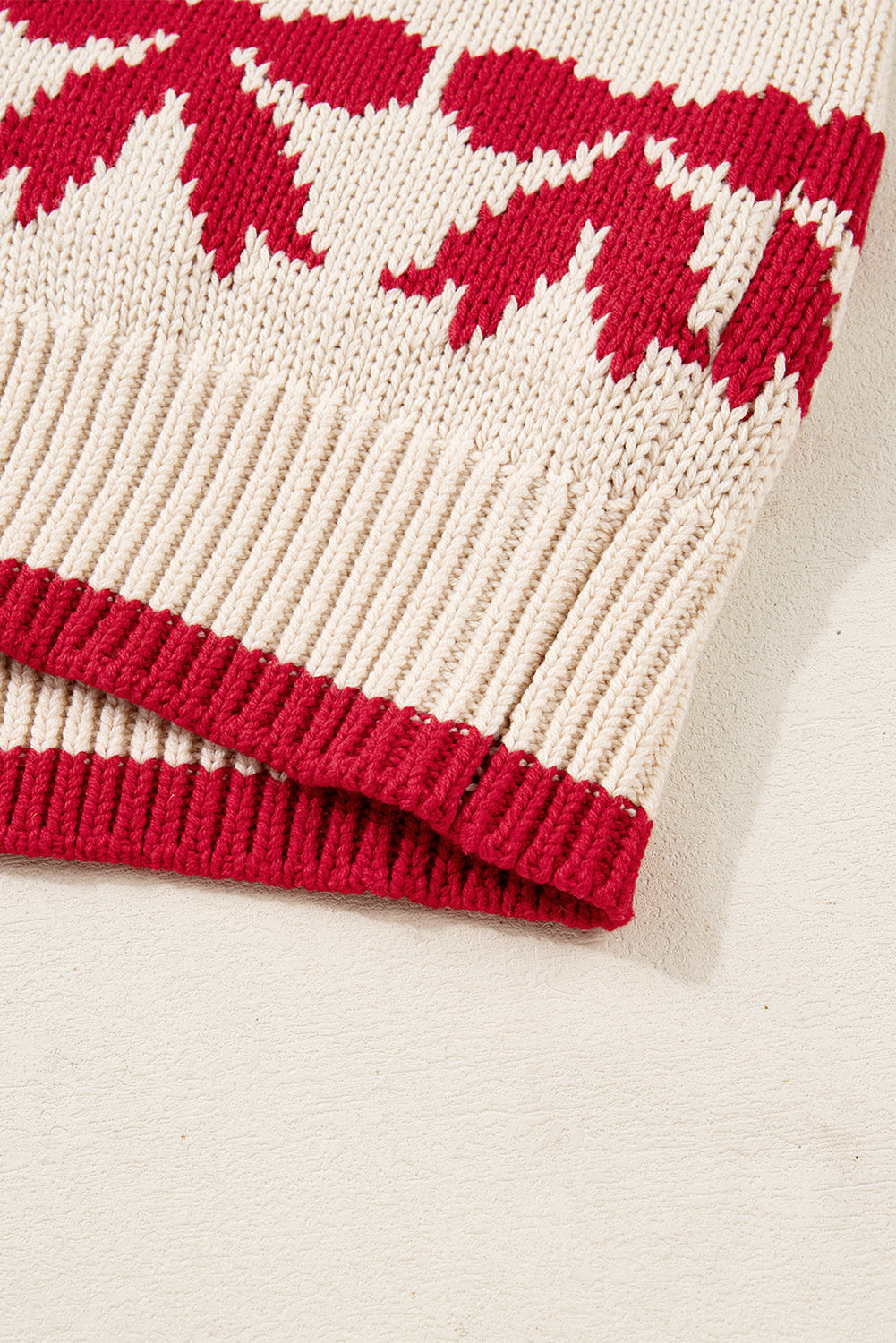 - The contrast bow pattern adds a feminine charm to this relaxed cardigan.