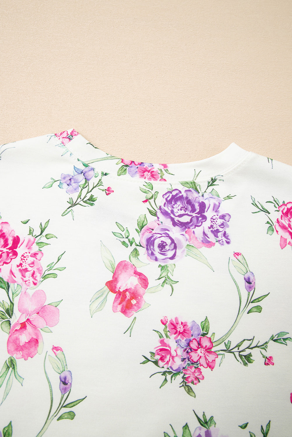 This floral loungewear set includes a pullover top and drawstring pants.
