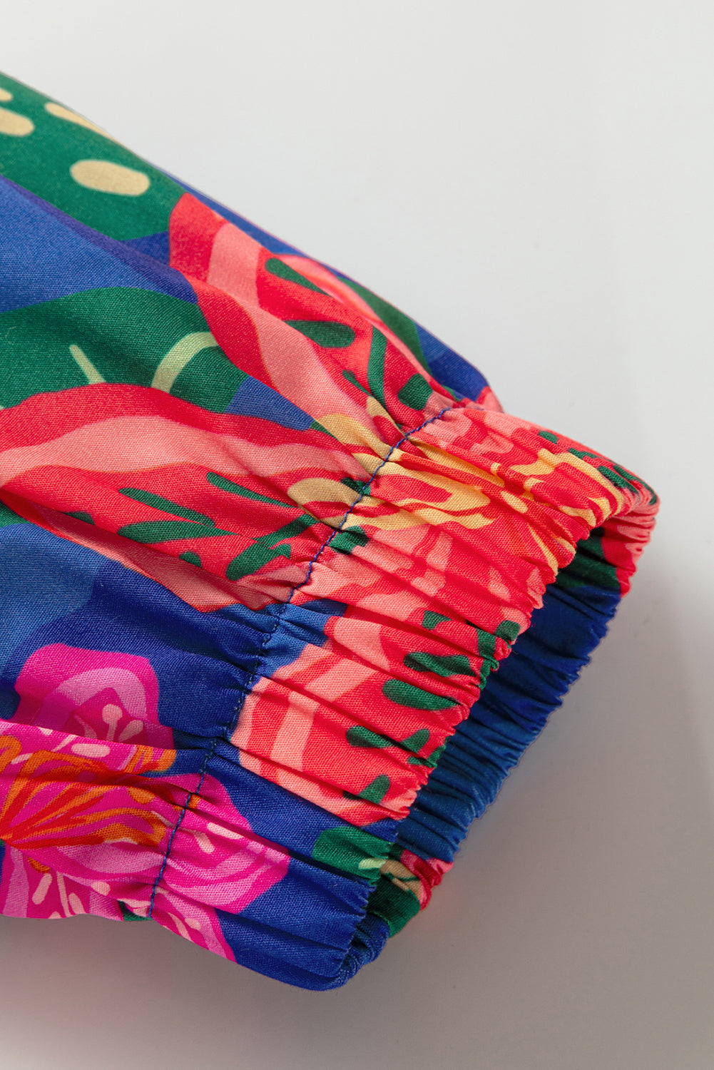 Blue Floral Print 3/4 Sleeve V Neck Tiered Long Dress