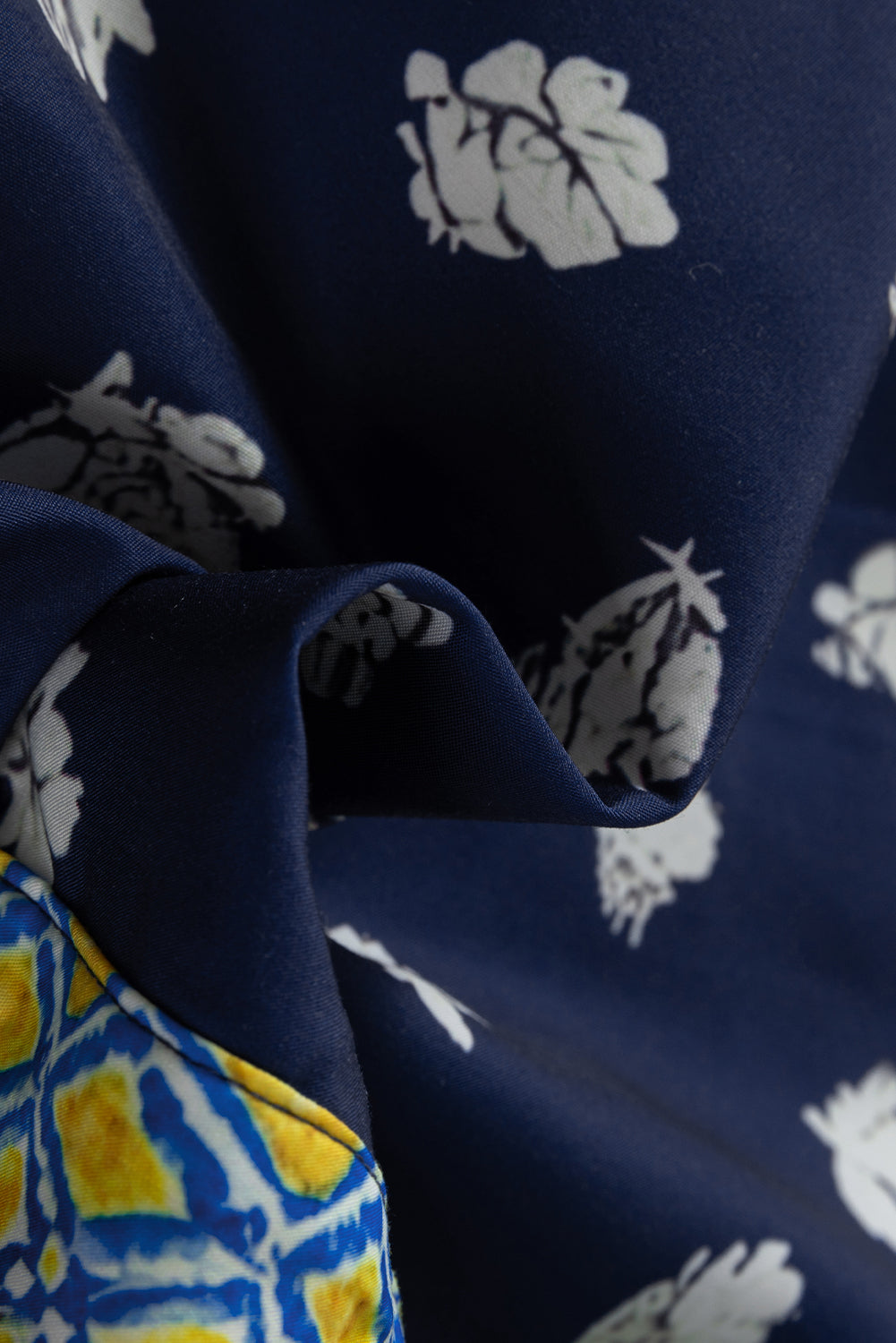 Blue Floral Print Half Sleeve Contrast Trim V Neck Blouse