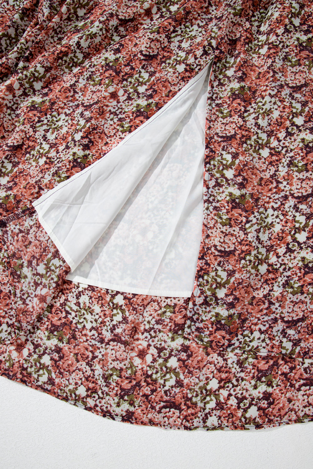Brown Floral Print Split Front Tiered Frilled V Neck Midi Dress