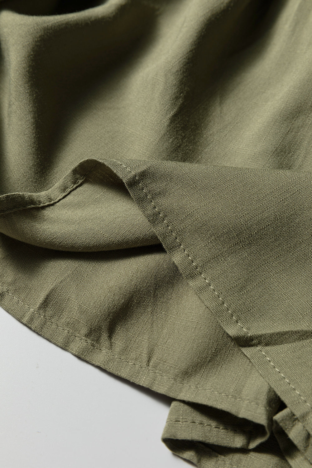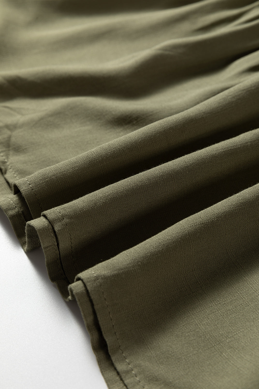 Four Leaf Clover Collared V Neck Smocked Detail Contrast Leopard Trim Bracelet Sleeve Long Dress