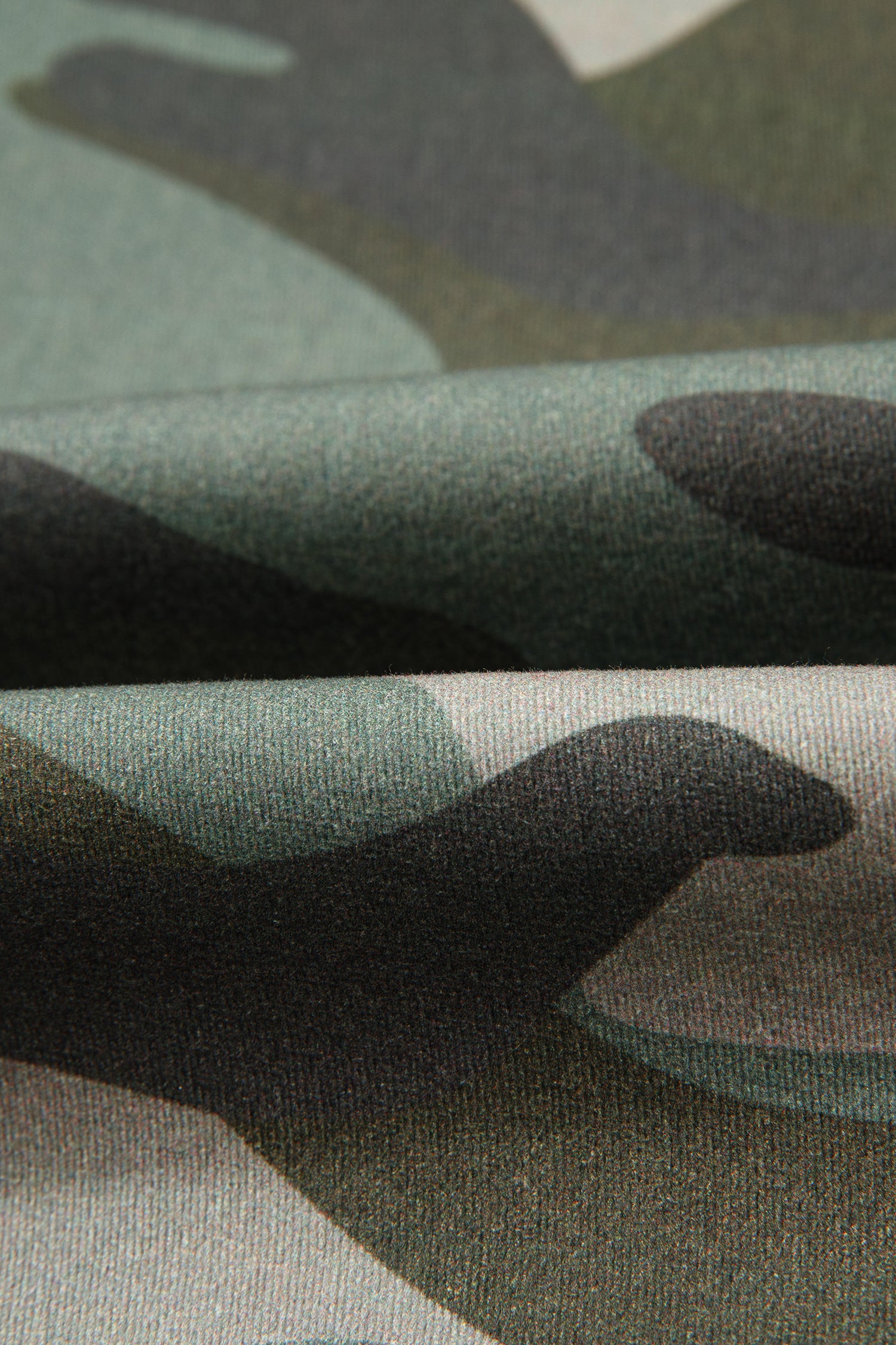 Green Camo Leopard Patchwork Flap Pocket Crop Jacket