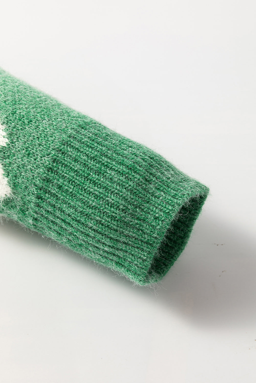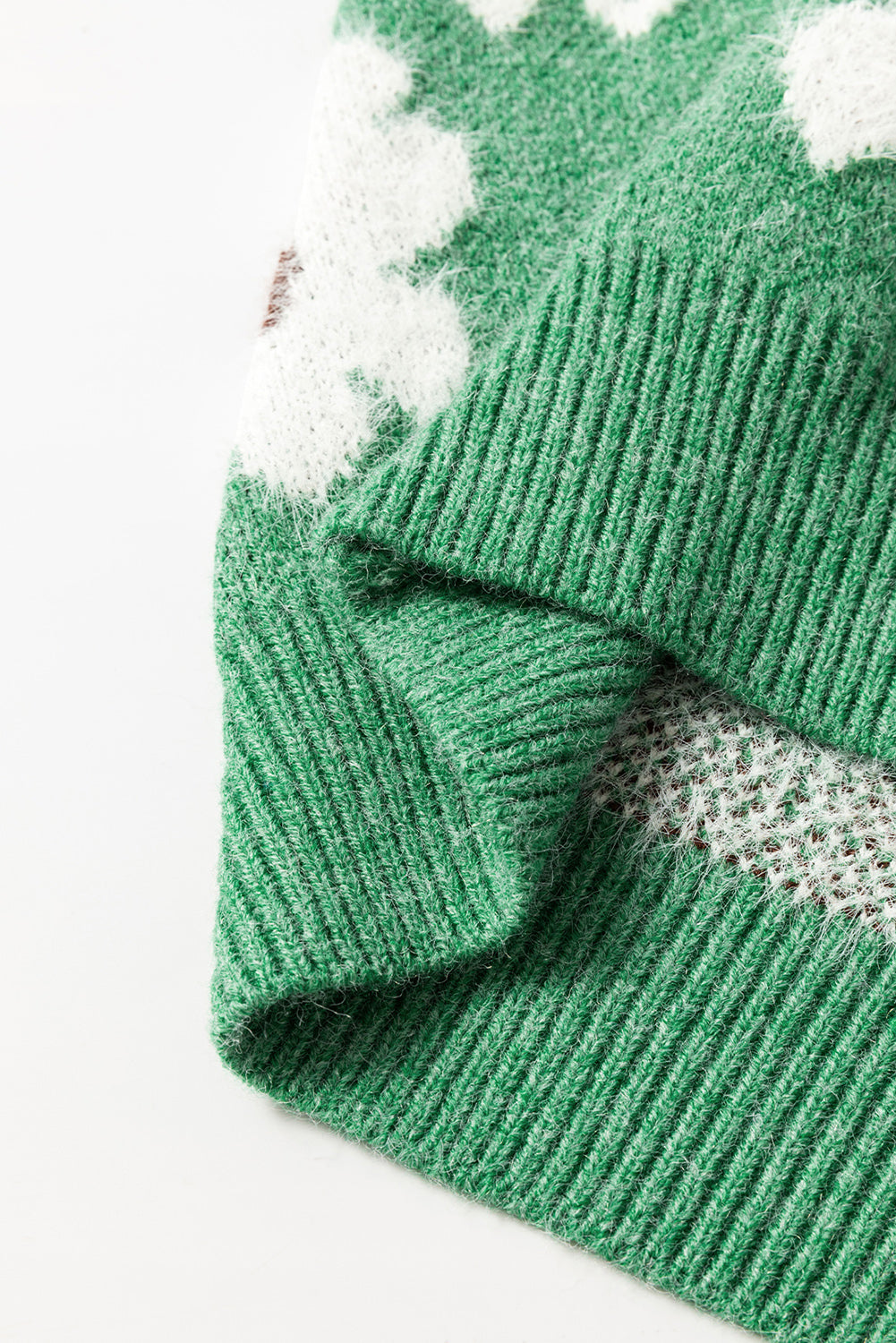 Green Floral Pattern Half Zip Drop Shoulder Sweater