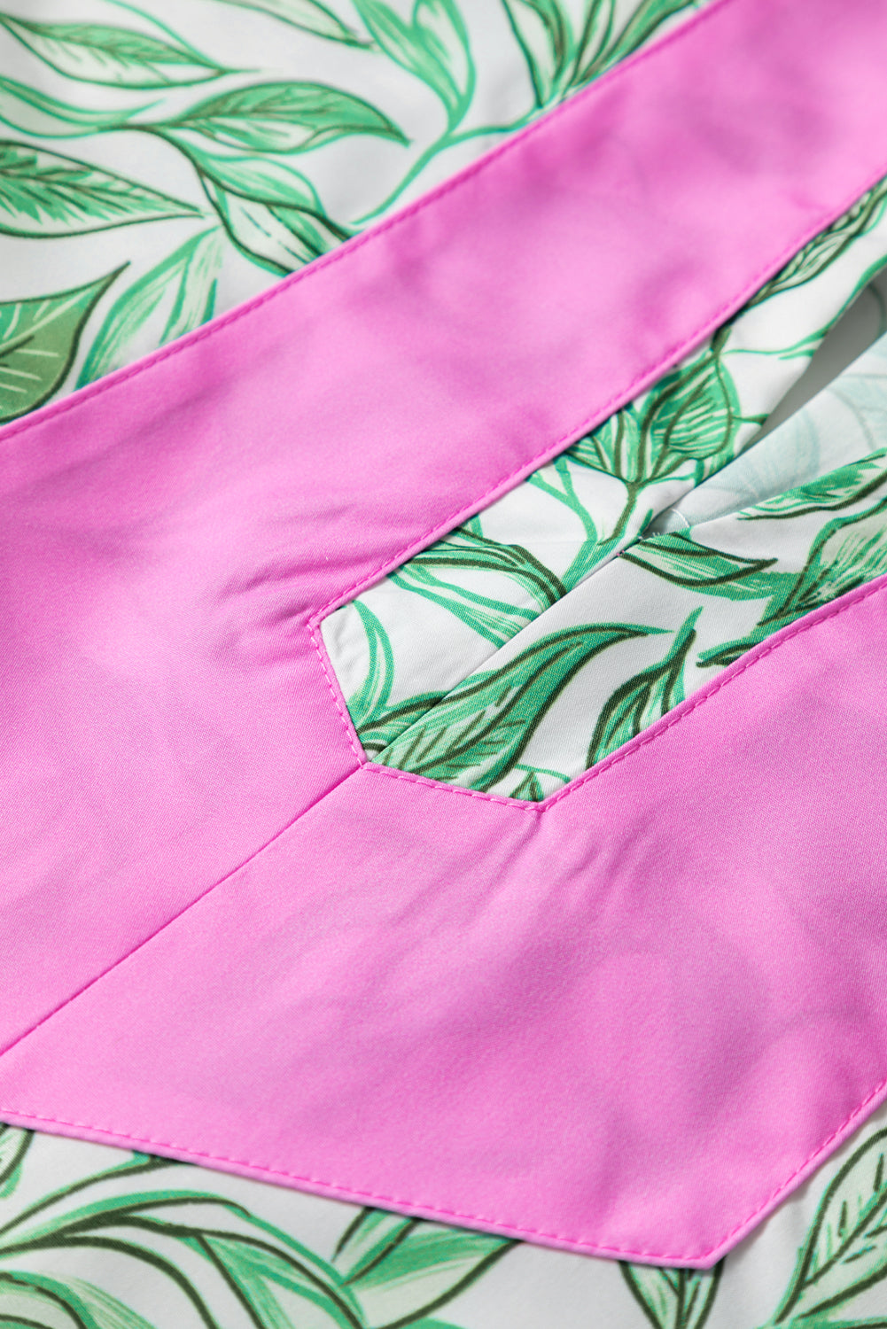 Green Leaves Pattern Color Block V Neck Puff Sleeve Blouse