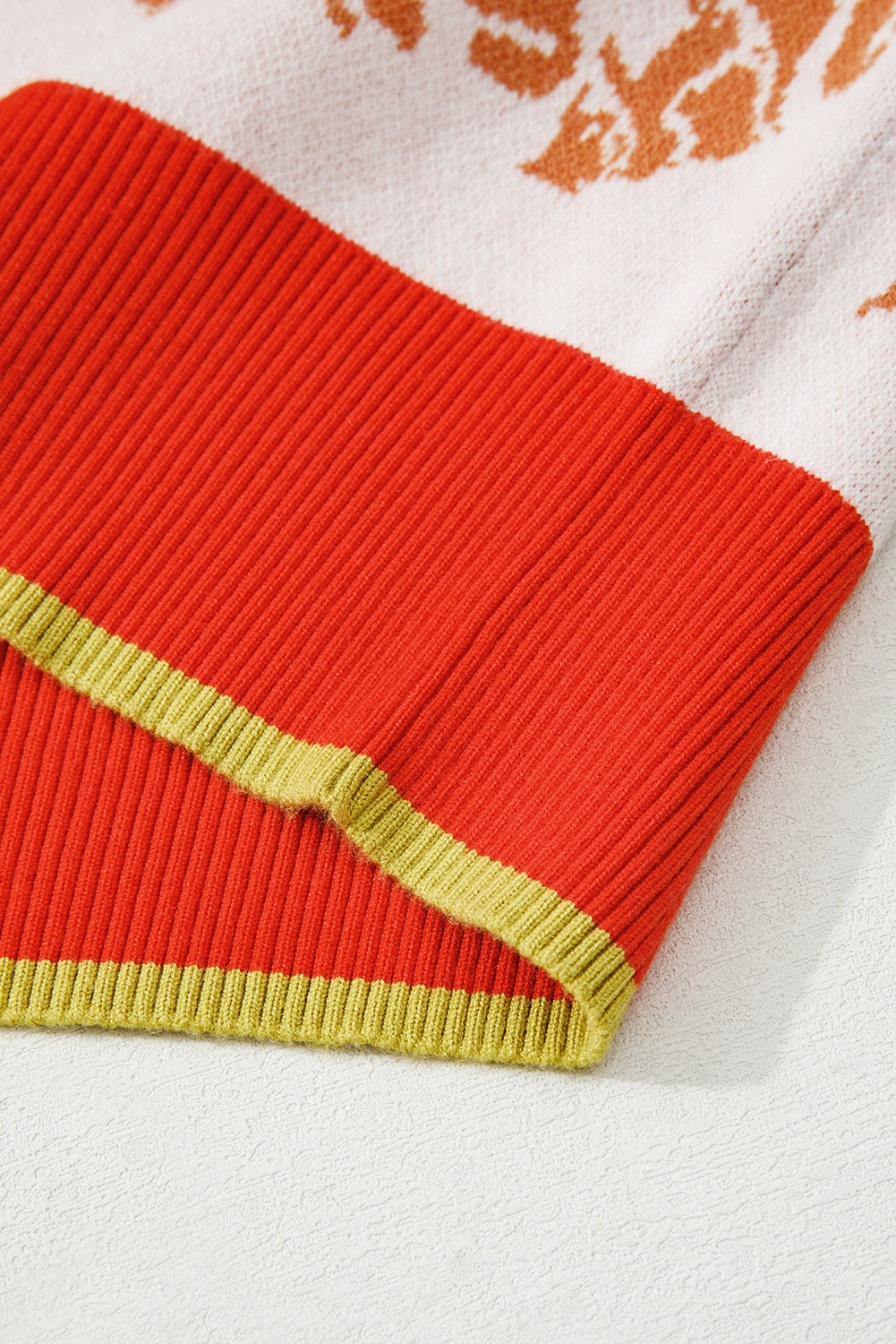 Made with a flower print knit, features a collared neck and drop shoulders.
