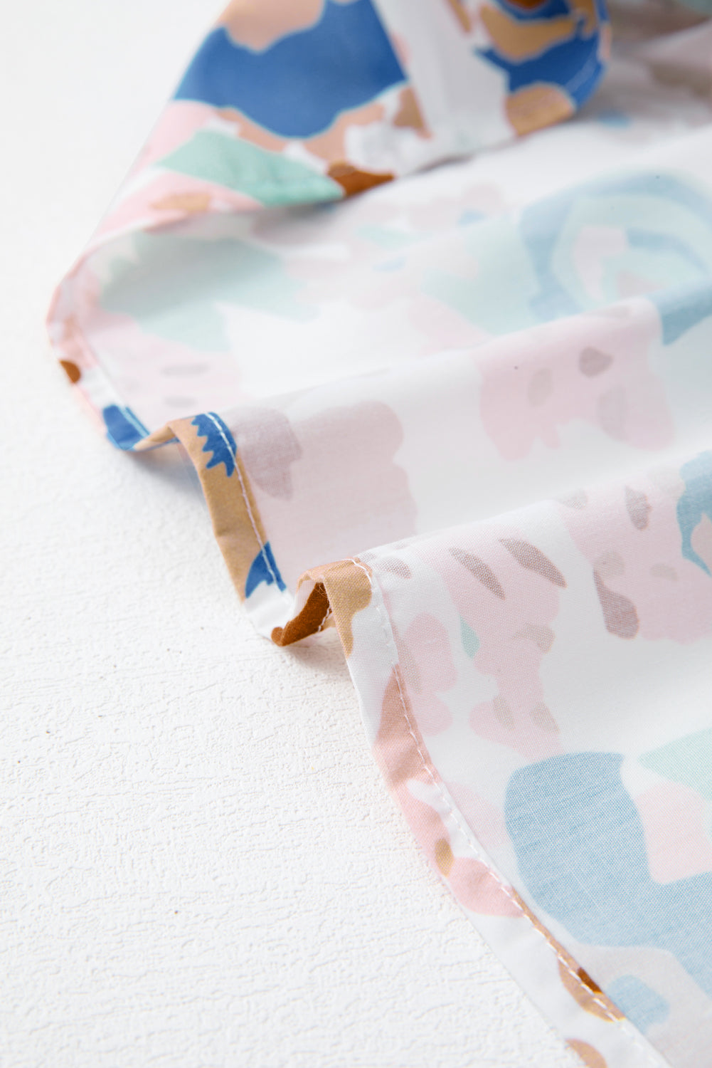 Multicolour Floral Print Ricrac Trim Collared Puff Short Sleeve Shirt
