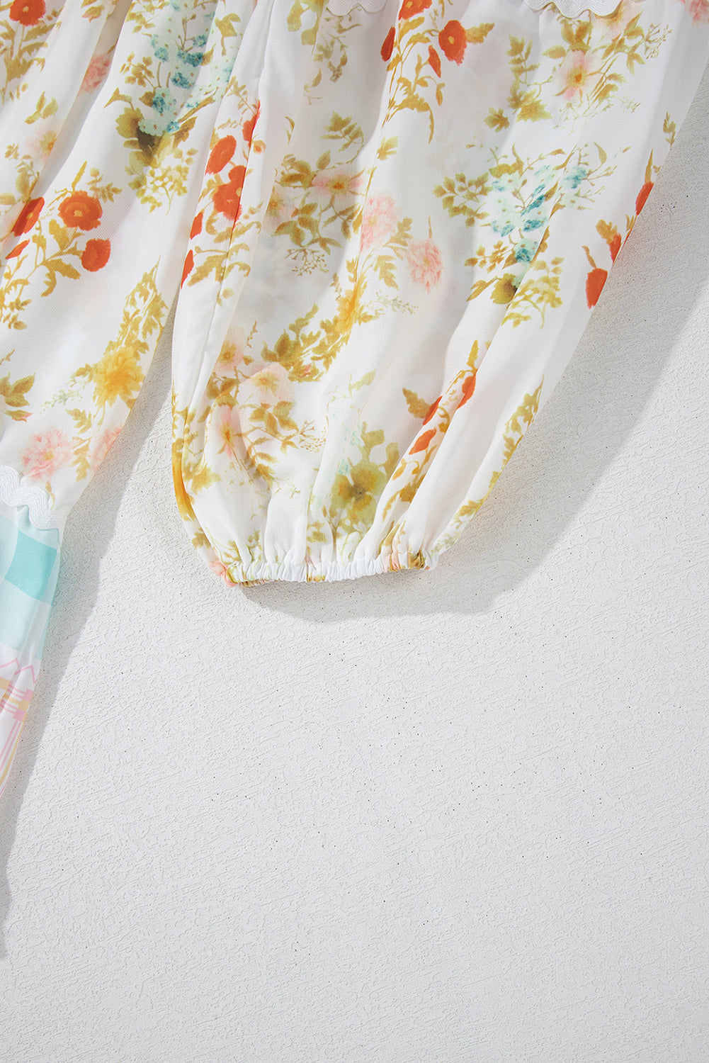 Pink Ric Rac Plaid Floral Print Patchwork Bubble Sleeve Dress
