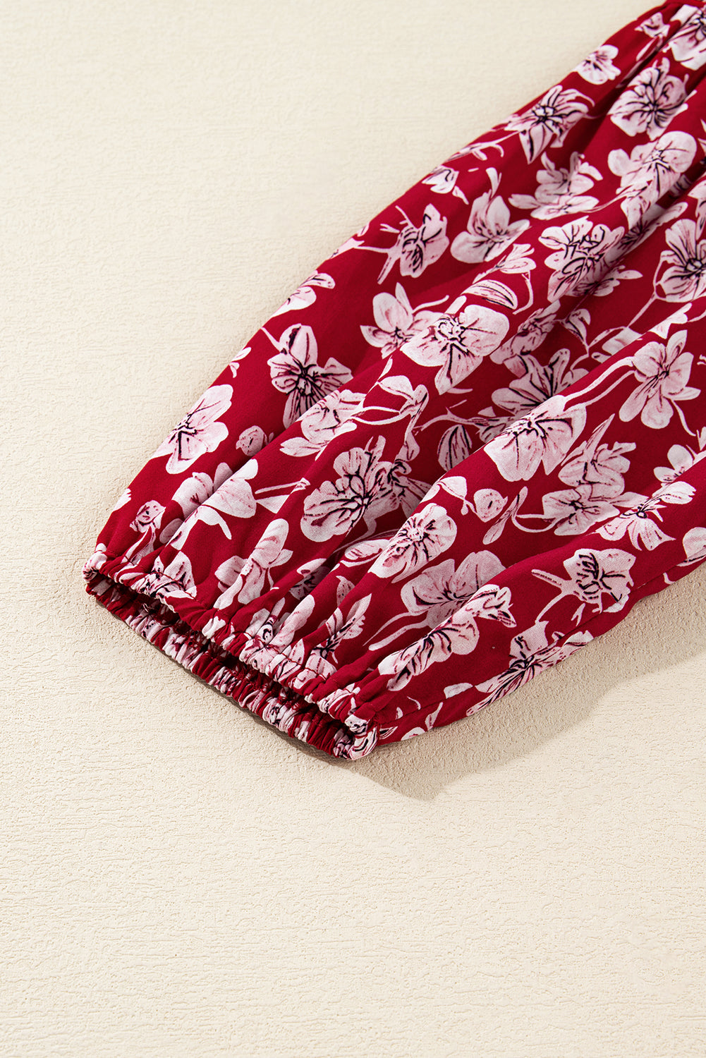 Purple Plus Floral Balloon Sleeve V Neck Relaxed Dress
