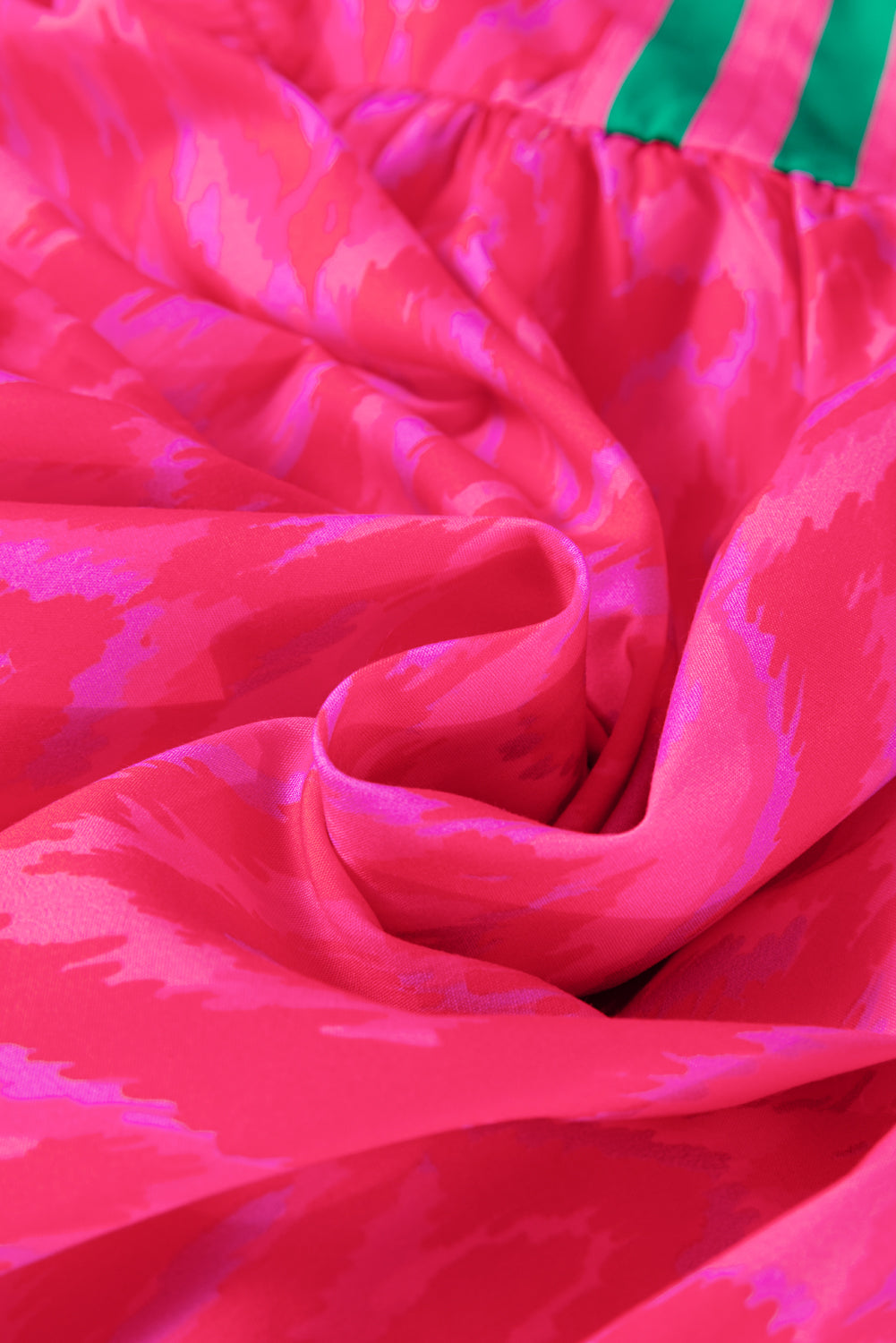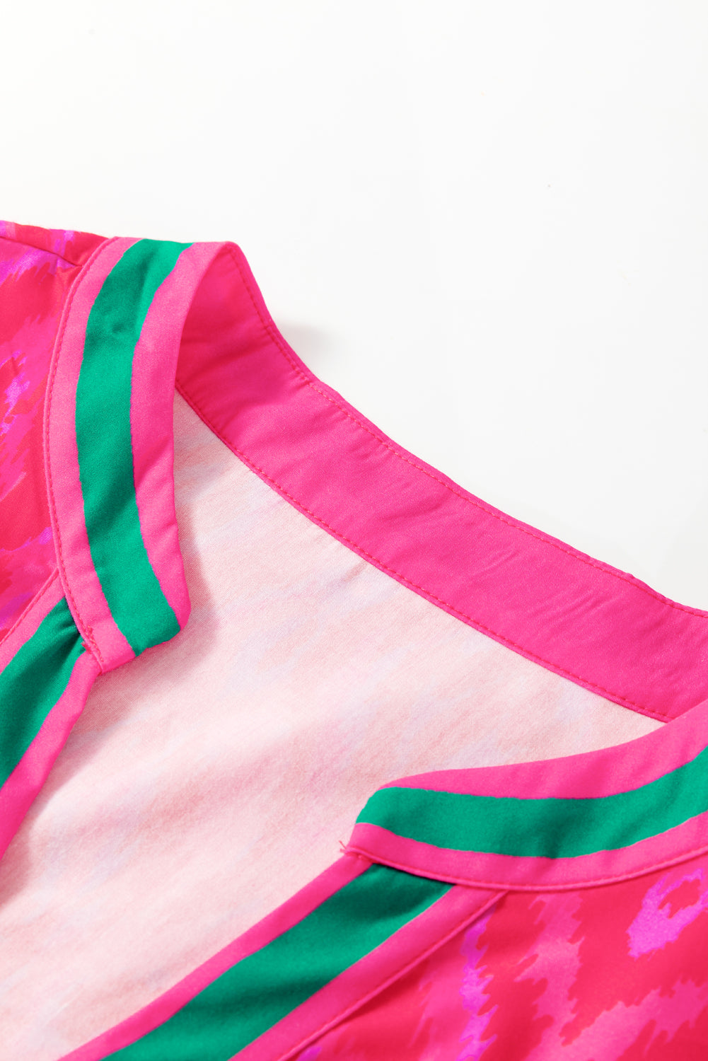 Red Allover Print Contrast Split Neckline Short Puff Sleeve Curvy Dress
