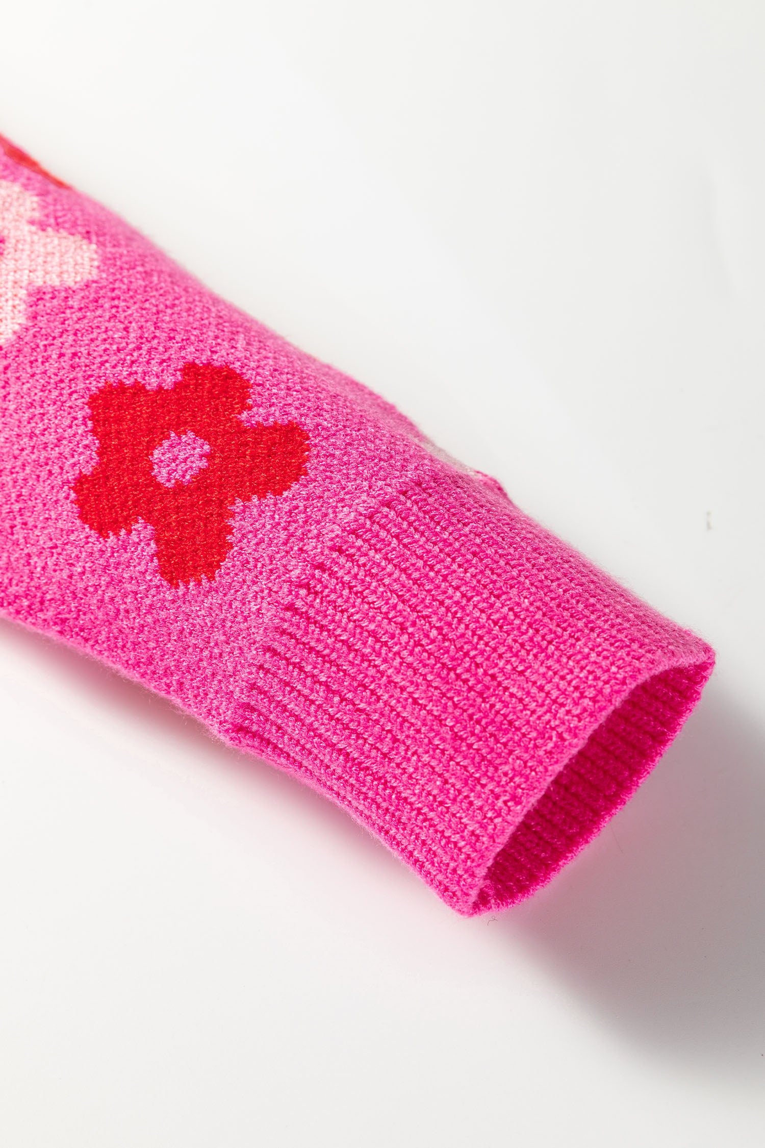 - Allover cute flower pattern makes this knit sweater sweet and playful.
