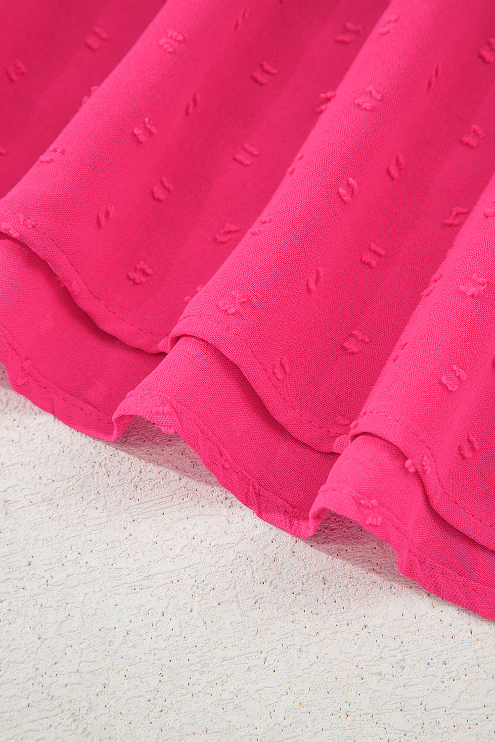 - Feminine Swiss dot fabric adds a touch of sophistication.